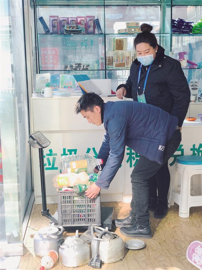 “你看,這些洗潔精、洗衣粉、毛巾、牙膏等生活用品都是我女兒用孫子、孫女寫完的作業(yè)本、家里的飲料瓶、紙箱子等生活垃圾兌換回來的,垃圾變廢為寶為家里減輕了經(jīng)濟壓力?,F(xiàn)在,我們?nèi)胰硕拣B(yǎng)成了垃圾分類的好習慣,主動將自家的垃圾進行分類,統(tǒng)一存放在家里的垃圾分類儲存處。”居住在娘熱路安居苑內(nèi)的措姆老人高興地說。