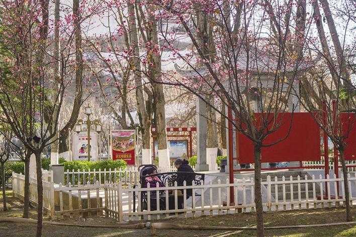 路上一對對老人在散步遛彎,隨著陣陣清風,泥土的清香傳來,暖風吹醒了沉寂一個冬天的寧靜。
