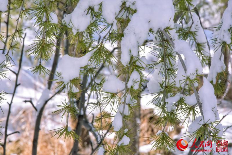 雪壓松枝。人民網(wǎng) 李海霞攝
