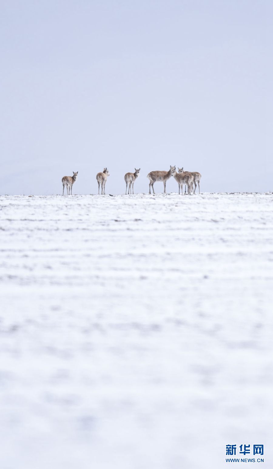 4月20日,一群藏羚羊向卓乃湖遷徙途中回望。新華社記者 吳剛 攝