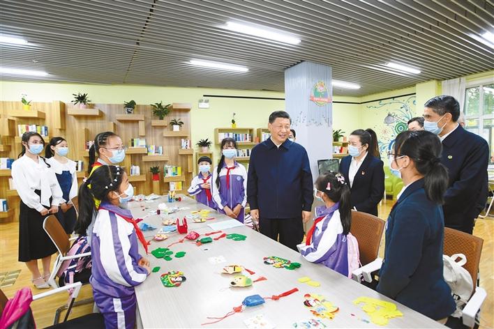 6月7日至9日,中共中央總書記、國家主席、中央軍委主席習近平在青??疾臁_@是7日下午,習近平在西寧市城西區(qū)文匯路街道文亭巷社區(qū)閱覽室,了解社區(qū)向青少年提供公益性課后托管服務情況。新華社記者 李學仁 攝