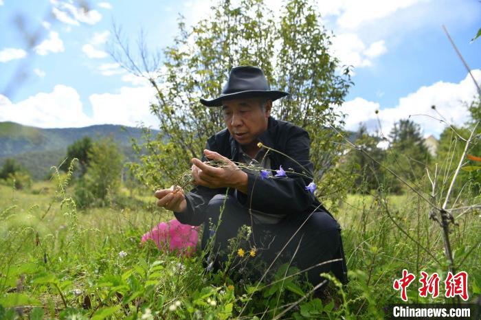 圖為方震東在香格里拉高山植物園觀察植物?!⑷疥?yáng) 攝