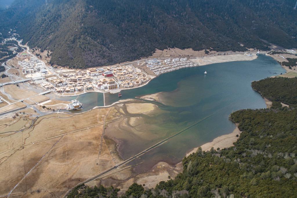這是川藏公路旁的魯朗國(guó)際旅游小鎮(zhèn)風(fēng)光(4月2日攝,無(wú)人機(jī)照片)。新華社記者 孫非 攝