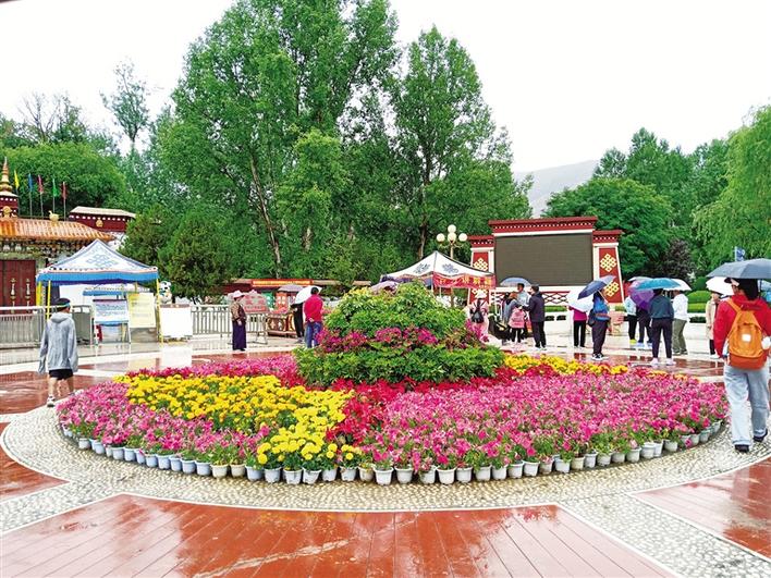 近期,拉薩市區(qū)頻降的雨水讓整座城市多了幾分清爽與涼意。走進(jìn)素有“西藏植物園”之稱的羅布林卡,院內(nèi)蔥綠的樹木、鮮艷的花朵、宏偉的藏式建筑構(gòu)成了一幅優(yōu)美的盛夏羅布林卡風(fēng)景圖。