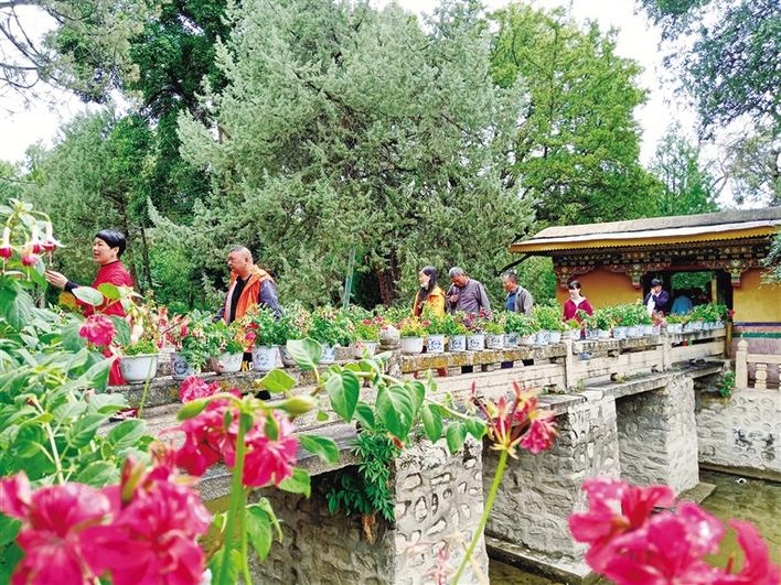 在羅布林卡廣場,擺放的花卉吸引人們拍照打卡留念。走進(jìn)園內(nèi),一陣清涼感迎面撲來,雨后的羅布林卡空氣濕潤,除了花草的香味還可以聞到一絲泥土的氣息。充沛的雨水讓園內(nèi)的樹木更加蔥郁、花朵更加?jì)善G。作為每年盛夏時(shí)期拉薩市區(qū)內(nèi)最佳的避暑去處,羅布林卡吸引著本地市民群眾、區(qū)外游客紛至沓來。