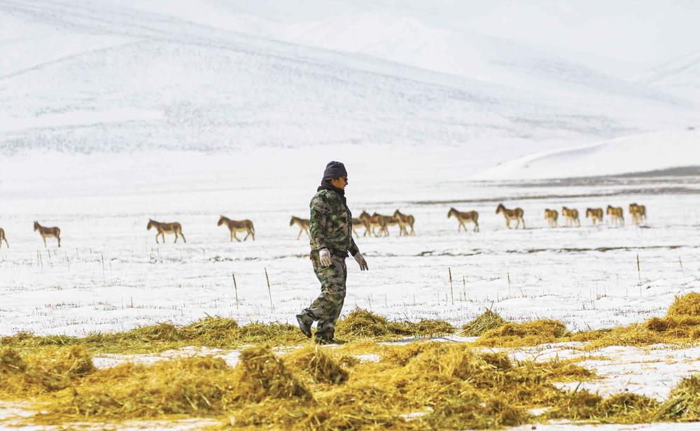 從戴上紅袖章那天開始,他就穿梭在山林、湖畔、河邊,有時撿拾垃圾,有時關注野生動物的蹤跡,默默守護這片家鄉(xiāng)的草場、湖泊、高山。在一次巡護中,切保和隊友們發(fā)現(xiàn)由于季節(jié)的變化,導致黑頸鶴等野生動物的巢穴被淹,給它們的生產棲息帶來了影響。于是,他和其他生態(tài)管護員為黑頸鶴等野生動物修巢筑窩12個?!安蛔尷廴静輬觥⑽廴緞又参锏乃吹亍笔敲恳晃还茏o員的共同想法。