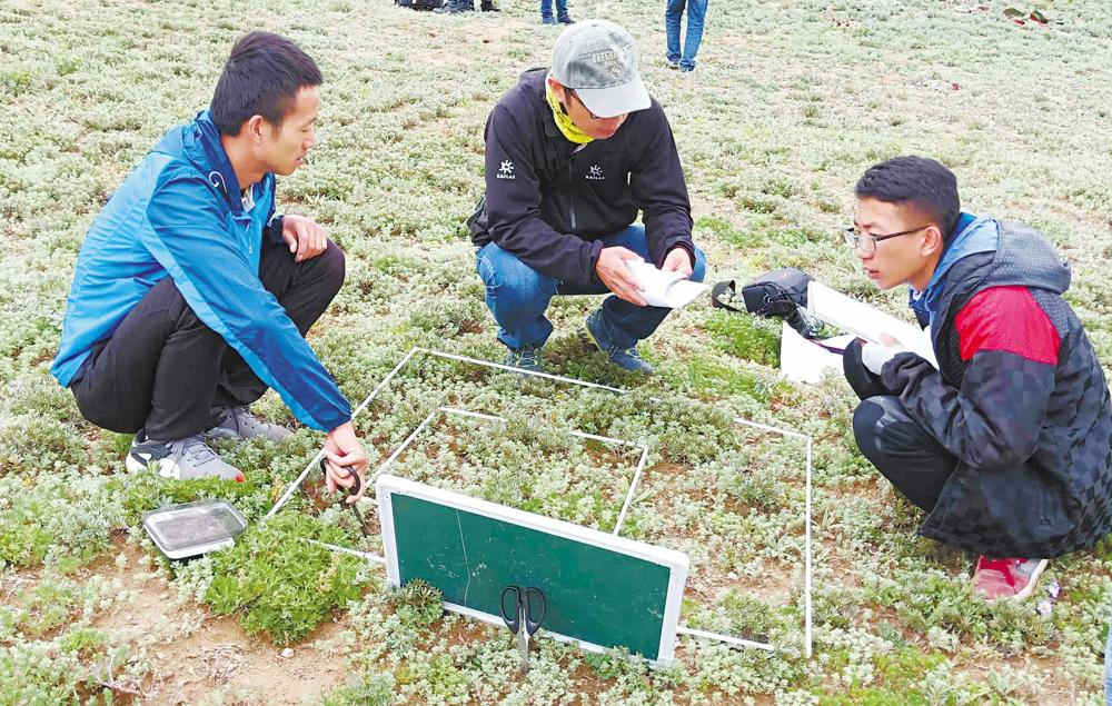 科研人員進行植物樣方調查。