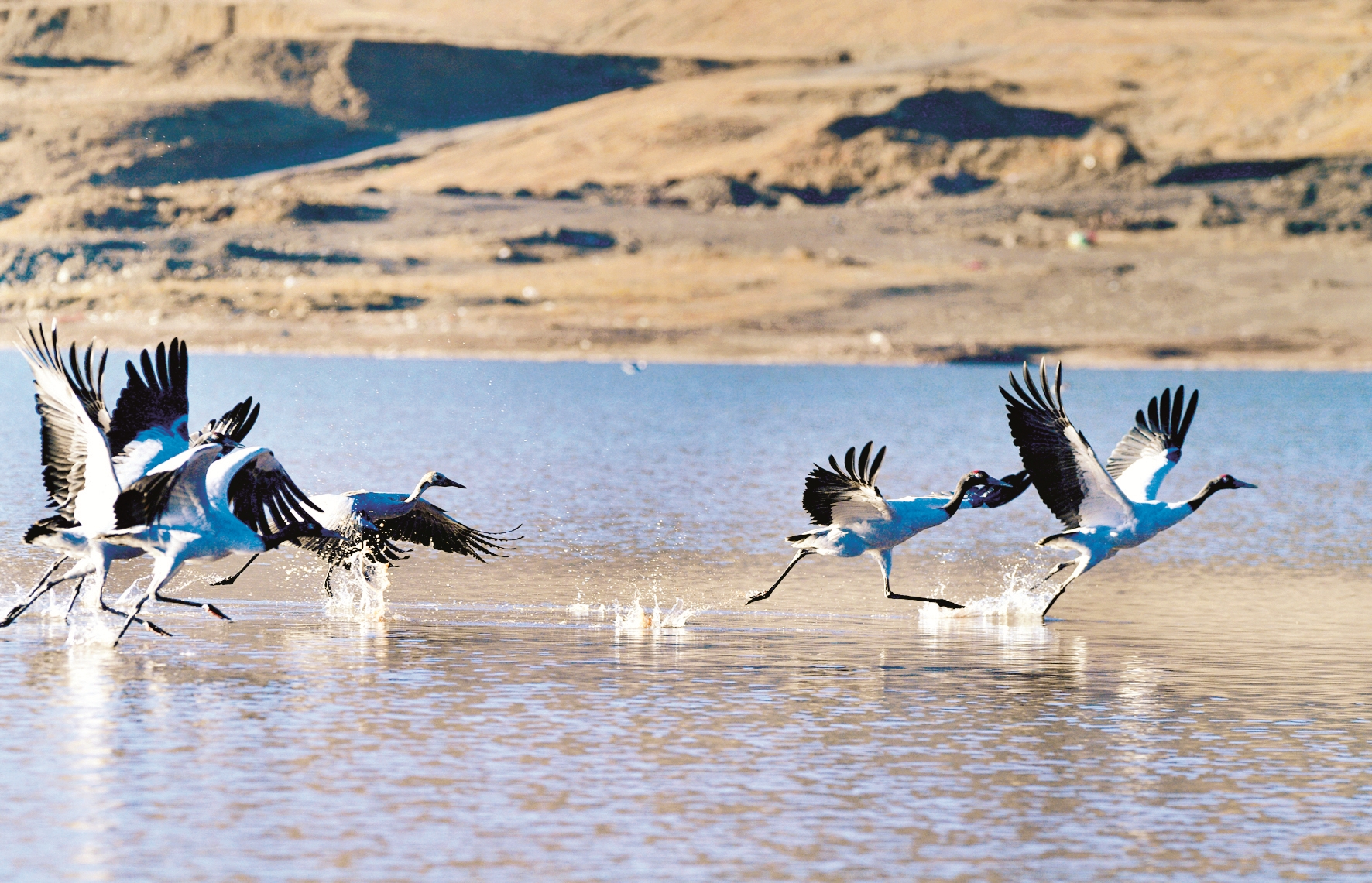 近日,大批黑頸鶴飛臨西藏拉薩市林周縣越冬。黑頸鶴是國家一級保護(hù)動物。近年來,隨著當(dāng)?shù)厣鷳B(tài)保護(hù)力度越來越大,每年11月前后至次年3月底,來林周縣越冬的候鳥越來越多。