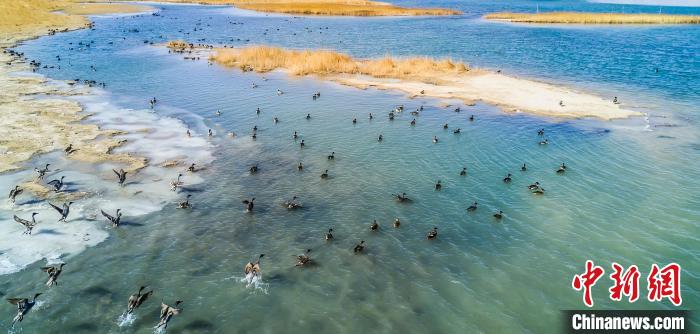 圖為格爾木濕地引無數(shù)野生鳥類棲息。 何啟金 攝