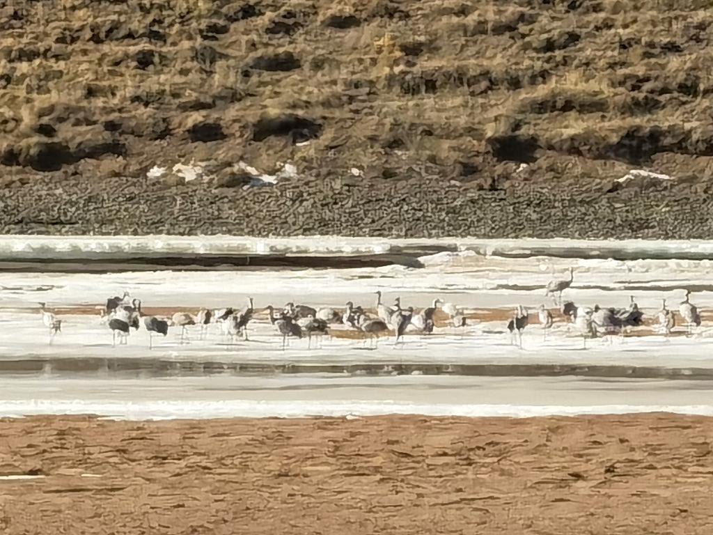 經(jīng)鳥類專家確認(rèn),這是遷徙中的蓑羽鶴,它們剛剛飛越喜馬拉雅山,途經(jīng)黃河源,在此短暫休整。