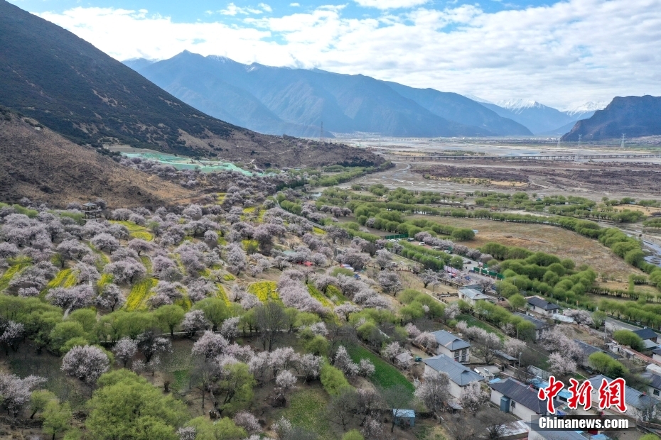 3月30日,桃花盛開的林芝市嘎拉村。西藏林芝市嘎拉村被譽(yù)為“林芝桃花第一村”,是林芝市最佳的賞花地之一。(無(wú)人機(jī)照片) 中新社記者 貢嘎來(lái)松 攝