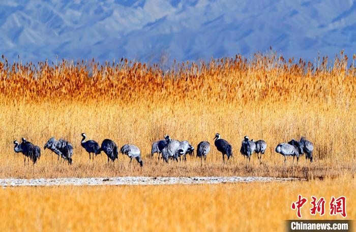 幾百只灰鶴齊聚柴達(dá)木盆地可魯克湖