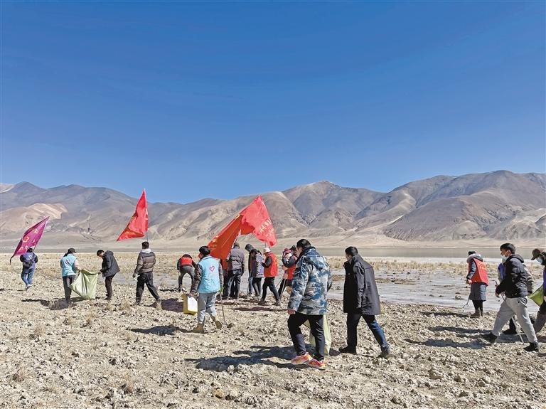 圖為定日縣青年志愿者們在撿拾垃圾。記者 次仁片多 索朗瓊珠 攝
