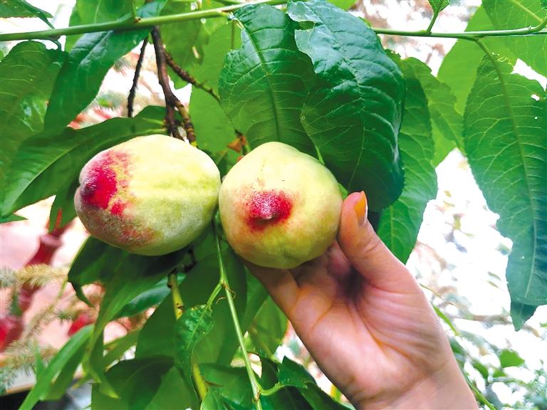 那曲市安多縣扎仁鎮(zhèn)溫室大棚內(nèi)種植的桃子。