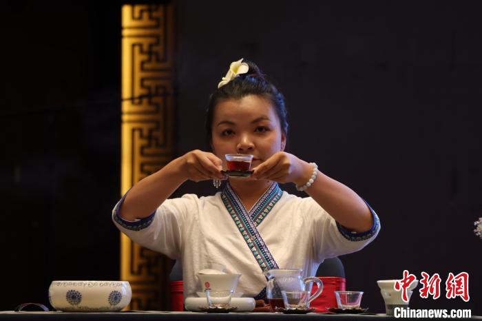 圖為國家高級茶藝師現場沖泡低氟普洱健康茶?!∶赚敋W珠 攝