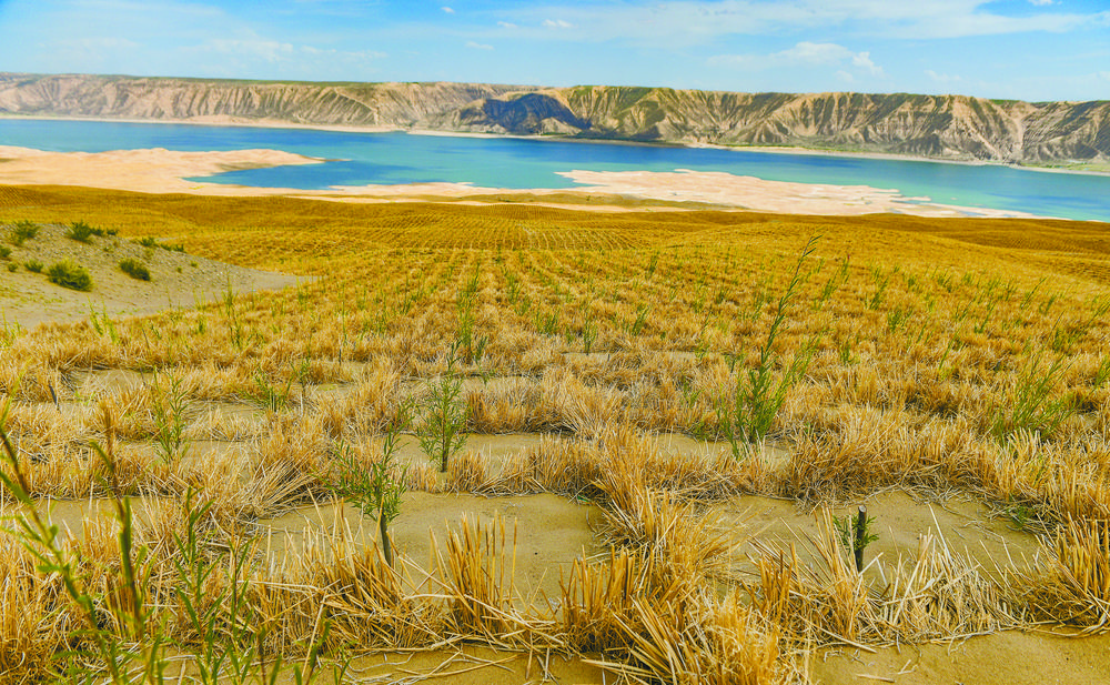 整齊排列的草方格,隨風(fēng)搖曳的烏柳樹,生機(jī)勃勃。青海省海南藏族自治州共和縣龍羊峽庫(kù)區(qū)北岸——曾經(jīng)的不毛之地,如今已煥然一新,一條條綠色長(zhǎng)廊盡顯生命的力量。自生態(tài)項(xiàng)目建設(shè)以來,共和縣通過草方格沙障與烏柳插桿水鉆造林、檸條直播及沙蒿撒播相結(jié)合等方法進(jìn)行荒漠化治理,造林成活率達(dá)到90%以上,創(chuàng)造出龍羊峽北岸的“綠色奇跡”。