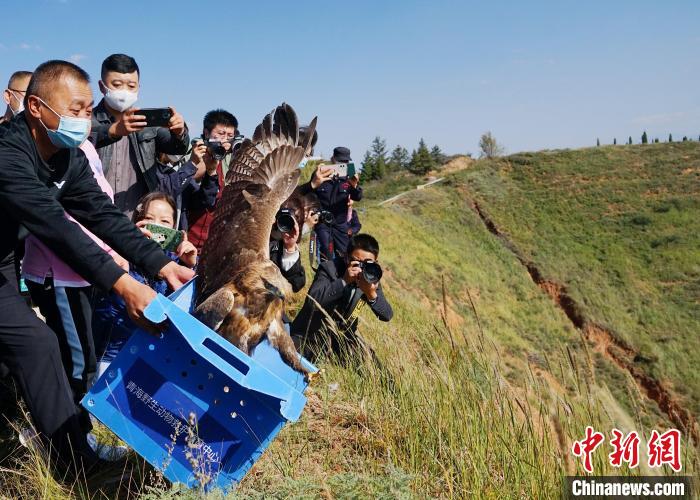 隨后,青海野生動(dòng)物救護(hù)繁育中心放歸兩只前期救護(hù)的大鵟。據(jù)悉,今年8月中旬及9月初,該中心救助兩只受傷大鵟,在通過傳染病排查及近一個(gè)月的飼養(yǎng)管理后,兩只大鵟恢復(fù)情況良好,具備野外放歸能力。