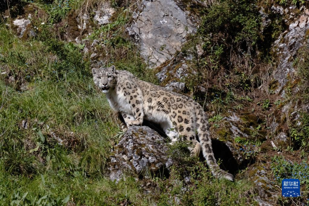 這是在青海省玉樹(shù)藏族自治州雜多縣境內(nèi)的昂賽大峽谷拍攝的雪豹(8月6日攝)。新華社發(fā)(姚牧陽(yáng) 攝)