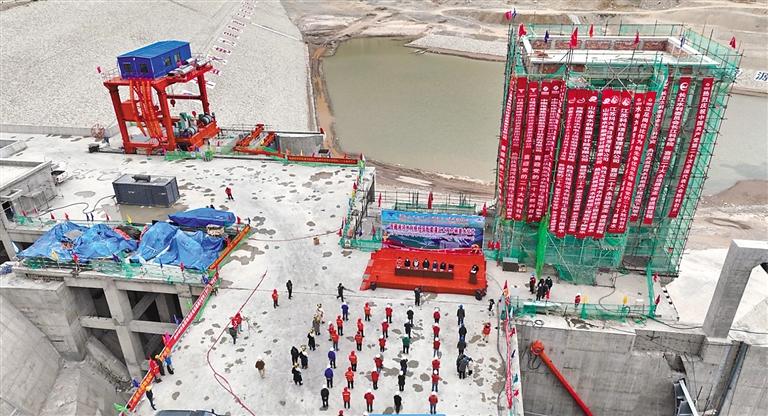 圖為湘河水利樞紐及配套灌區(qū)工程下閘蓄水現(xiàn)場。通訊員 趙亮 旦增羅布 記者 扎西頓珠 攝
