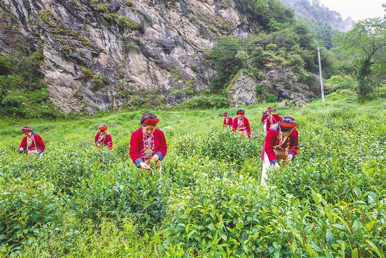 圖為加快建設(shè)邊境沿線發(fā)展帶,邊境一線各族群眾生活有保障、致富有渠道、守邊有動(dòng)力、發(fā)展有支撐。圖為西藏自治區(qū)錯(cuò)那縣茶葉專(zhuān)業(yè)合作社農(nóng)牧民采摘新茶。