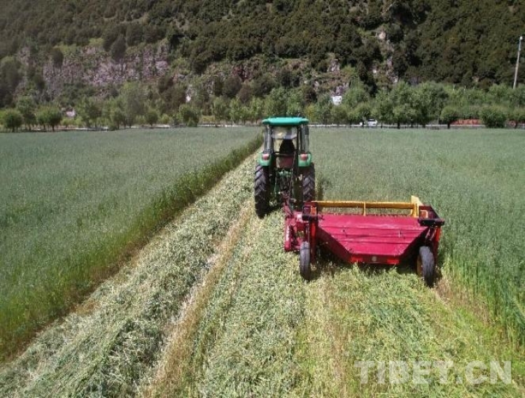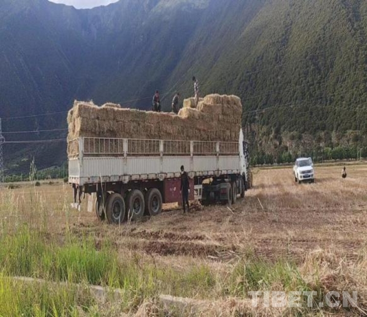拉薩市墨竹工卡縣扎雪鄉(xiāng)其朗村村民在收割牧草