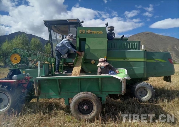 圖為國(guó)家牧草產(chǎn)業(yè)技術(shù)體系拉薩綜合試驗(yàn)站曲尼帕基地燕麥種子秋收搶收工作(海拔3760米)