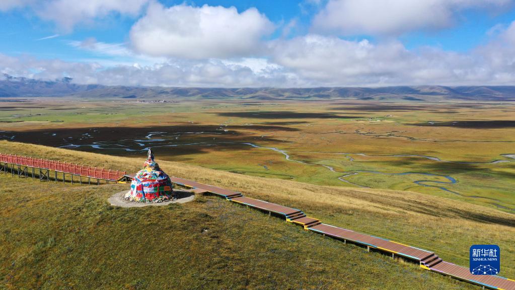 這是2022年9月21日拍攝的瑪曲縣阿萬(wàn)倉(cāng)濕地(無(wú)人機(jī)照片)。新華社記者 陳斌 攝