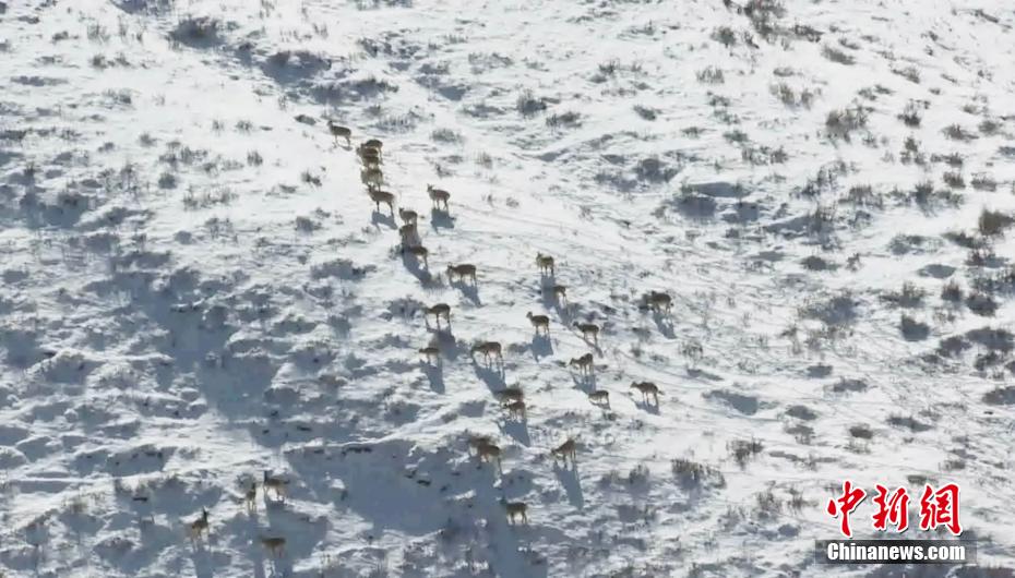 初冬時(shí)節(jié),青海省烏蘭縣攝影愛好者在烏蘭縣境內(nèi)發(fā)現(xiàn)近百只巖羊在崖壁間集體覓食,場面壯觀。據(jù)了解,巖羊?qū)賴叶?jí)重點(diǎn)保護(hù)野生動(dòng)物,常年生活在海拔2000到3000米的高山裸巖、草甸、山谷之中,具有極高的攀巖技術(shù),被稱為“巖壁上的精靈”。圖為巖羊群在雪地里覓食。 烏蘭縣融媒體中心 供圖
