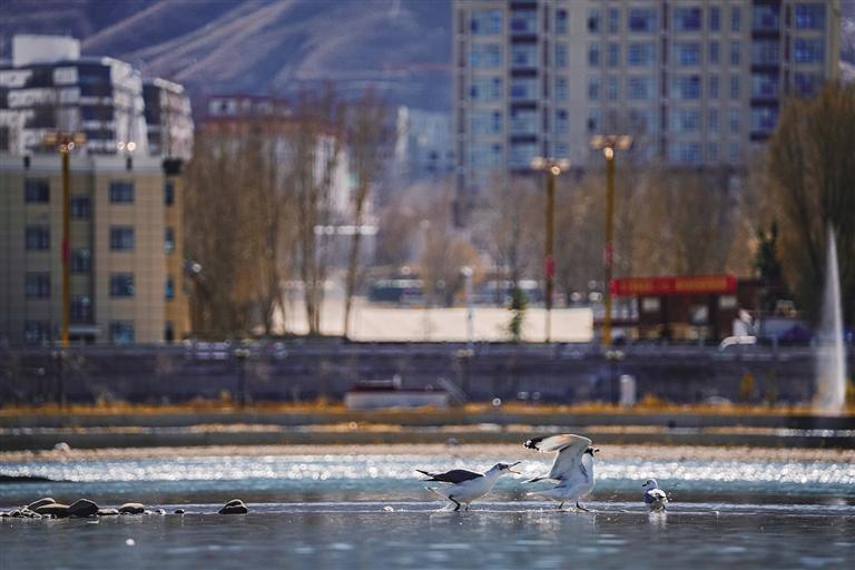 候鳥大約是拉薩入冬的標志。初冬時節(jié),拉魯濕地和拉薩河邊,到處都是從遠方飛來越冬的黃鴨、斑頭雁。隨著拉薩生態(tài)環(huán)境更加優(yōu)美,這些可愛的精靈選擇在此越冬,讓許多觀鳥愛好者心動。每天清晨天還未亮,他們就早早地守候在水邊,只為記錄下候鳥迎著第一縷朝陽翩然飛舞的景象。