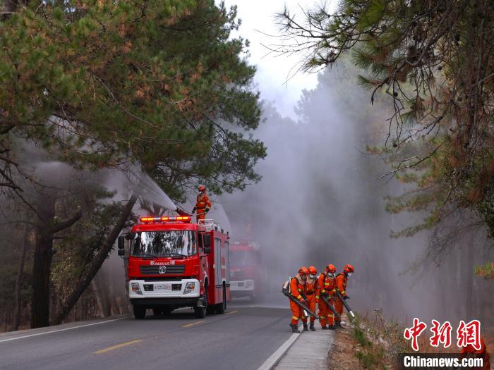 圖為森林消防員正在進(jìn)行灑水增濕作業(yè)。 巴宜區(qū)森林消防中隊(duì)供圖