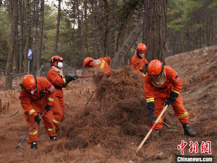圖為森林消防員正在進(jìn)行林下可燃物清理?!“鸵藚^(qū)森林消防中隊(duì)供圖
