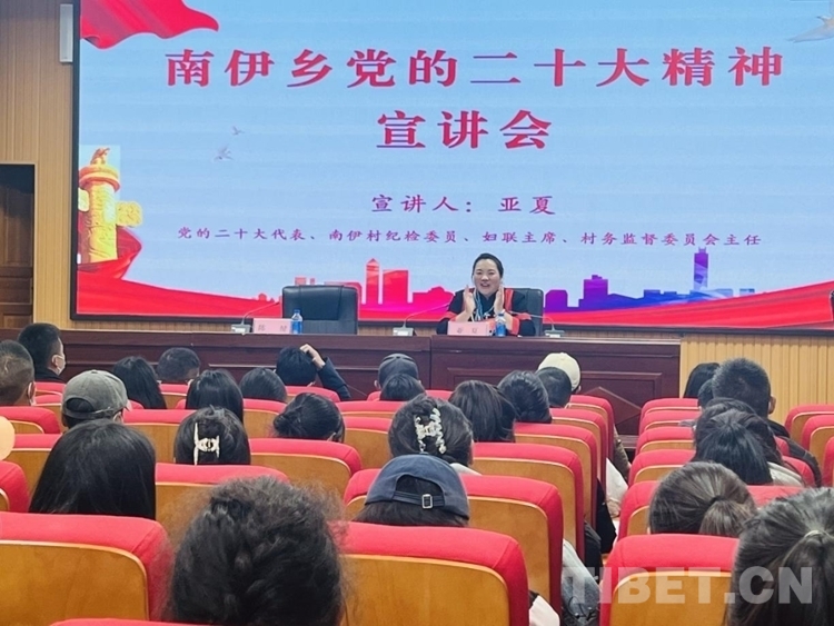 圖為米林縣召開干部大會傳達學習貫徹黨的二十大精神