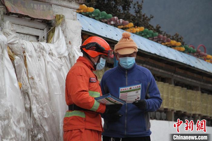圖為森林消防員為駐地民眾科普防火知識。 林芝市森林消防供圖