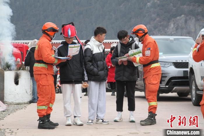 圖為森林消防員在景區(qū)重點區(qū)域普及防火知識。 林芝市森林消防供圖