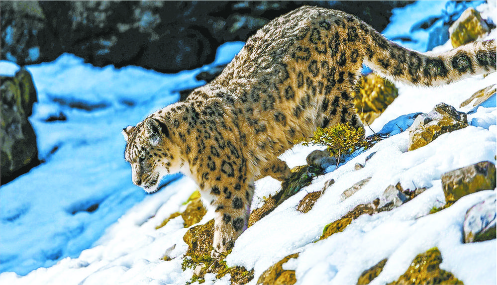 在三江源國家公園拍攝到的雪豹。 新華社發(fā)