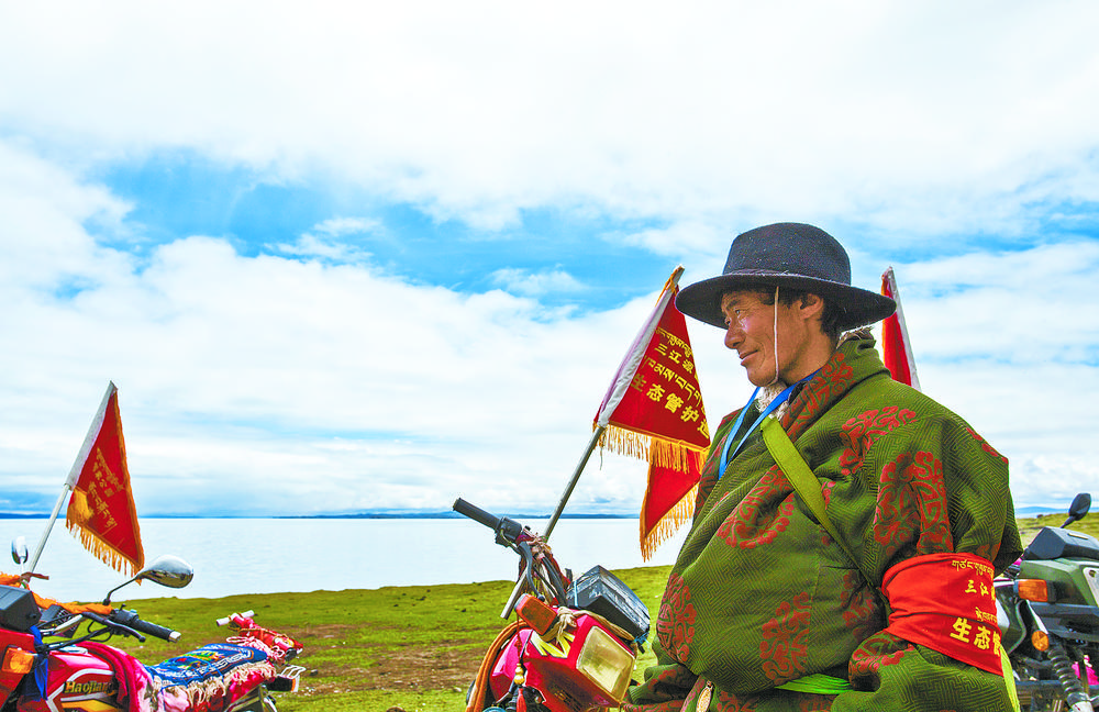 作為三江源國家公園的一名生態(tài)管護(hù)員,尼瑪扎西每天在放牧自家牛羊的同時,也承擔(dān)撿拾垃圾、巡護(hù)湖泊草場、巡查和保護(hù)野生動物等職責(zé)。