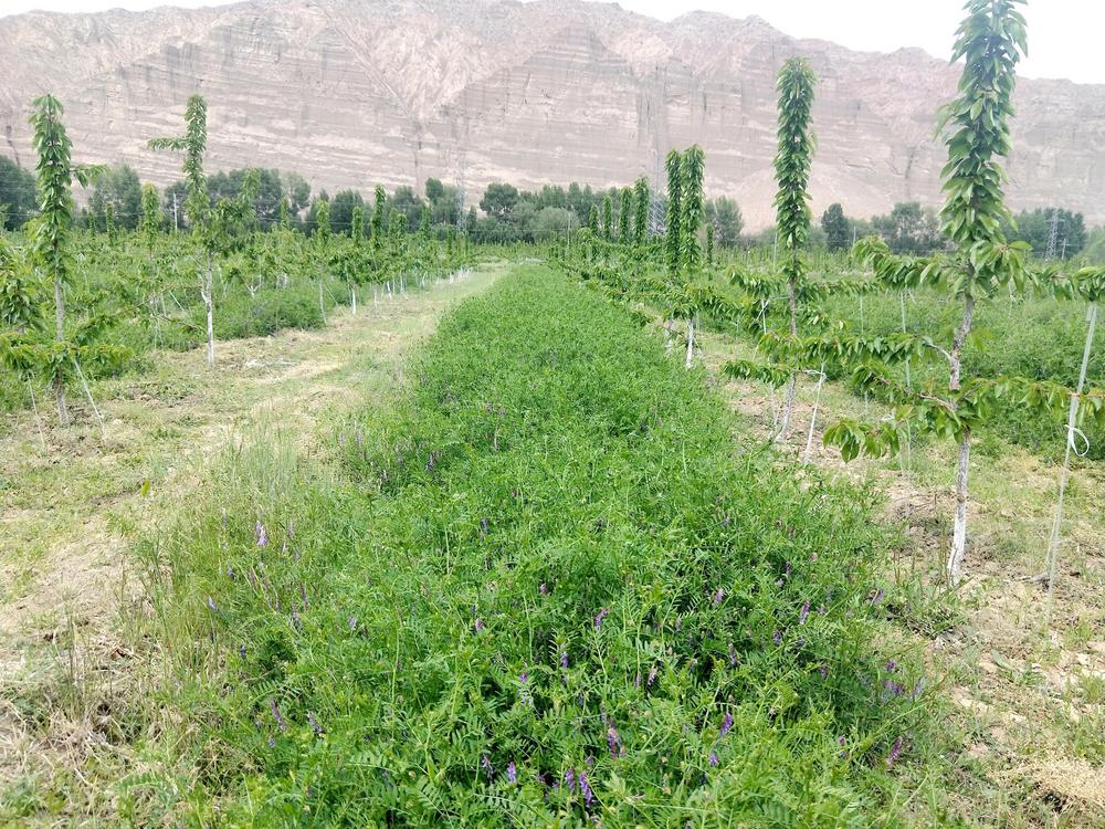 “果園處于黃河河谷沖積帶,產(chǎn)區(qū)光照時(shí)間長(zhǎng),晝夜溫差大,雨熱同期。但土壤是黏土,透氣性差一些,改變這個(gè)情況,就要靠種植綠肥,使用有機(jī)肥之類的。”果園負(fù)責(zé)人滕樂知告訴記者。這幾年,他們和國(guó)家綠肥產(chǎn)業(yè)技術(shù)體系西寧綜合試驗(yàn)站合作后,每年都會(huì)在果樹間作綠肥箭筈豌豆、二月蘭,收割翻壓增強(qiáng)土壤肥力,以此一點(diǎn)點(diǎn)改善土壤,土壤好了,果樹就好,果樹長(zhǎng)好了自然就有好果子。