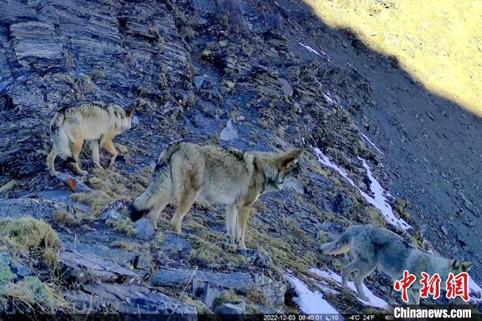 紅外線相機(jī)拍到的狼群?!⌒慢埧h林業(yè)和草原局供圖