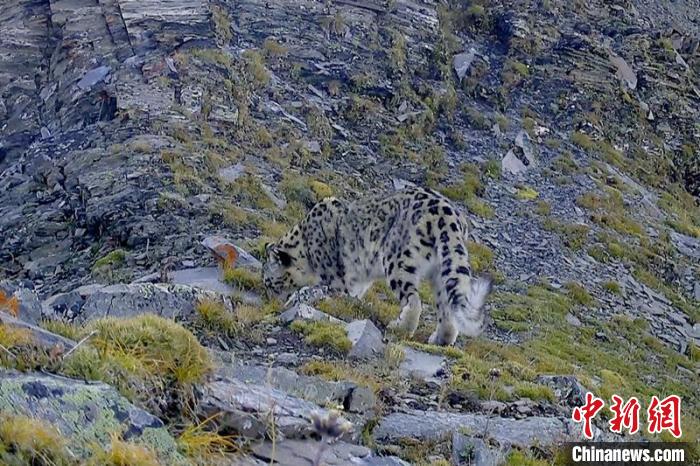 紅外線相機(jī)拍到的國家一級保護(hù)動(dòng)物雪豹活動(dòng)影像。 新龍縣林業(yè)和草原局供圖