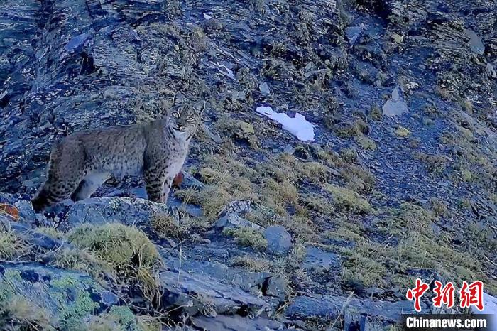 紅外線相機(jī)拍到的國家二級保護(hù)動(dòng)物猞猁?!⌒慢埧h林業(yè)和草原局供圖