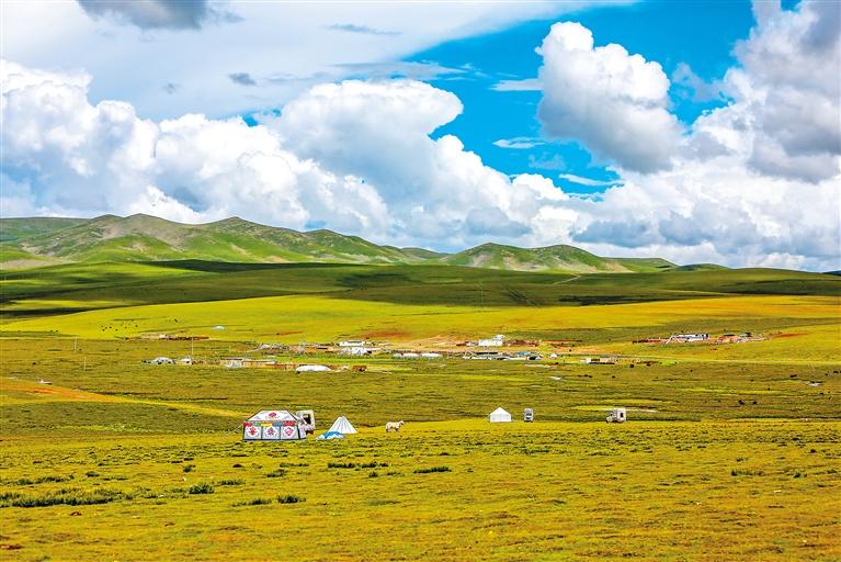 波光粼粼的拉魯濕地里魚翔淺底、水鳥翩飛,遠處的群山蒼翠峭拔、云霧繚繞,五彩斑斕的田野、錯落有致的民居構成了一幅田園山水畫……如今的雪域高原放眼望去,天更藍、水更清、山更綠、空氣更清新,人與自然和諧共生。