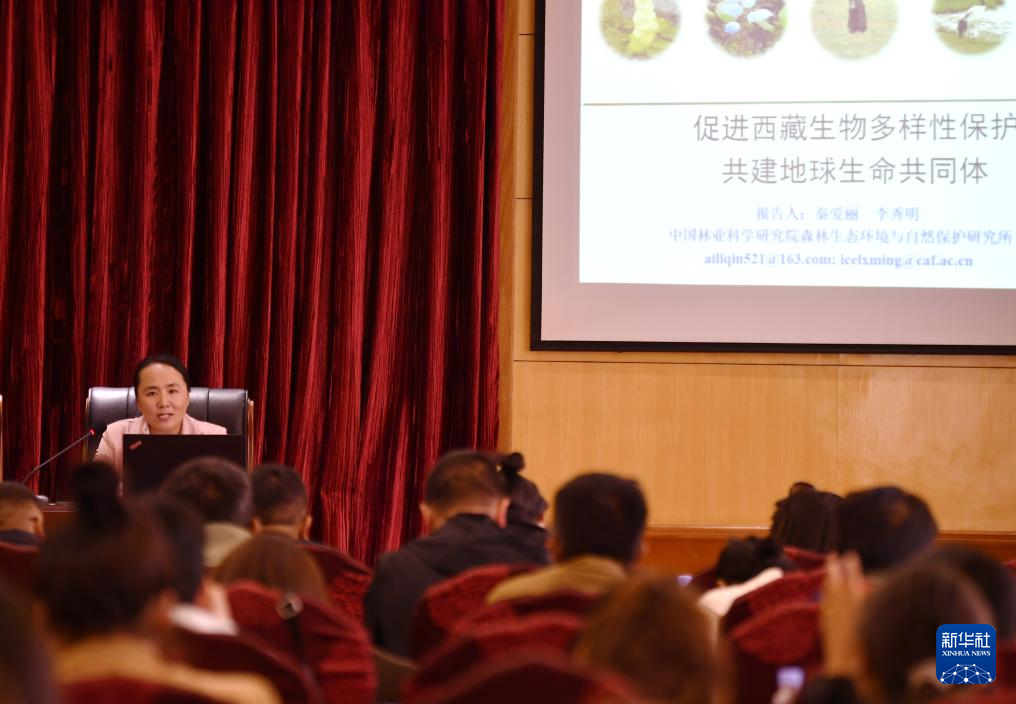 9月5日,中國林業(yè)科學(xué)研究院副研究員秦愛麗為與會人員作生物多樣性保護(hù)知識講座。新華社記者 張汝鋒 攝