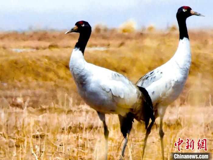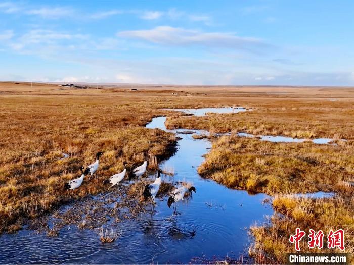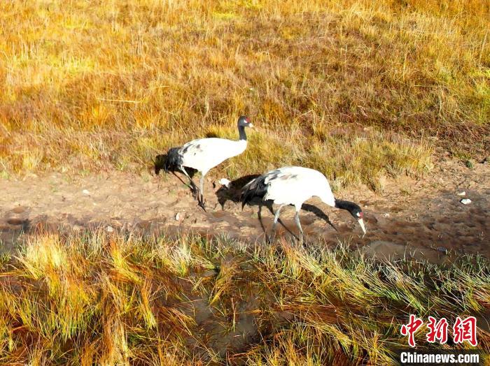 圖為黑頸鶴結伴覓食。桑吉才讓 攝