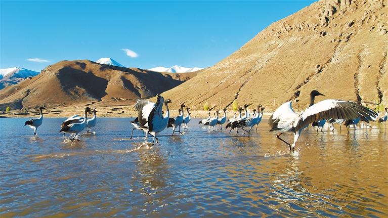 近年來,西藏不斷加大黑頸鶴生存環(huán)境保護力度,黑頸鶴數(shù)量呈現(xiàn)逐年遞增的良好態(tài)勢。10月21日,記者從林周縣了解到,黑頸鶴“先遣隊”已抵達林周縣,開啟越冬模式。首批到達林周的黑頸鶴共有58只,主要棲息在虎頭山水庫和卡孜水庫。