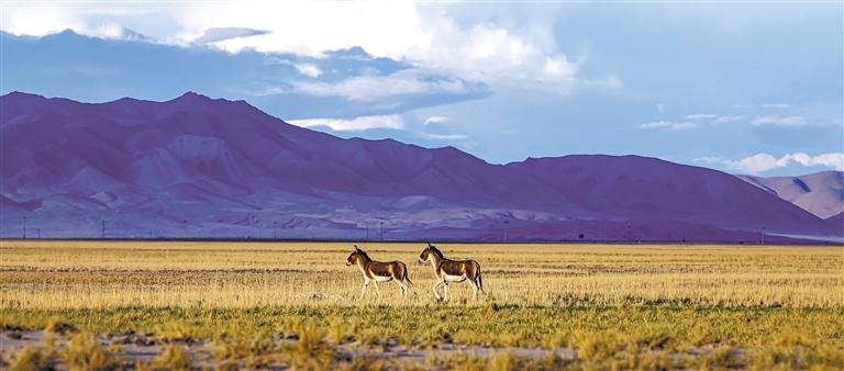 在羌塘國家級(jí)自然保護(hù)區(qū)內(nèi)行走的藏野驢。通訊員 邊巴多吉 攝