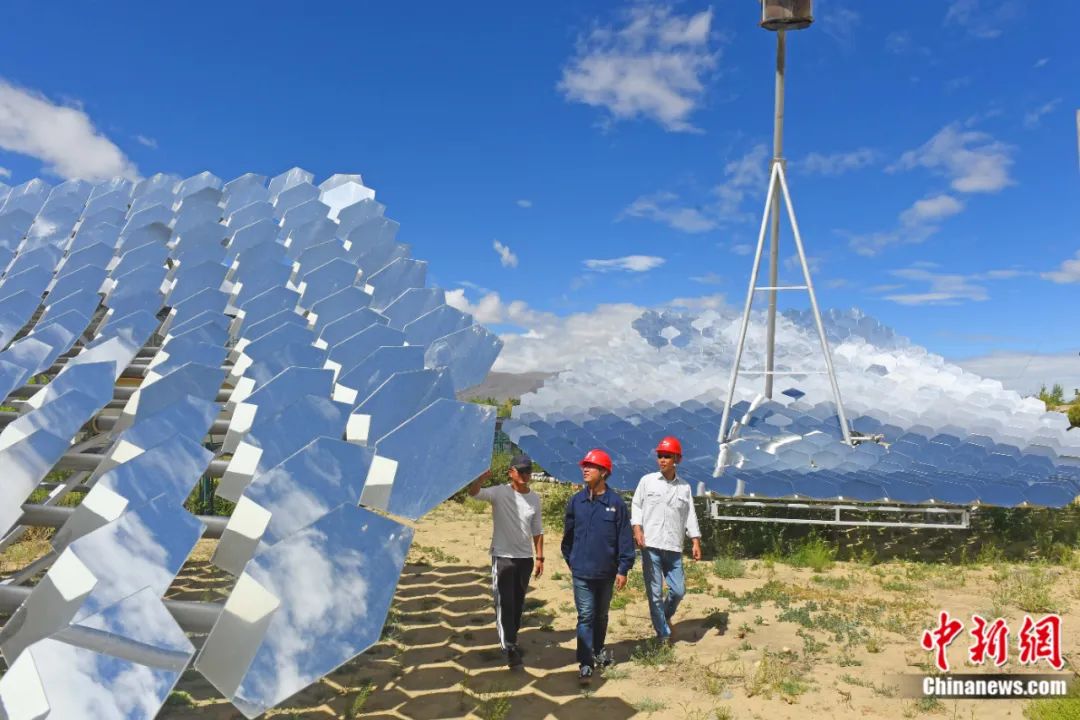 2020年6月,西藏山南市扎囊縣,工作人員對西藏首座多碟共焦塔式聚光集熱器的電力設(shè)施進(jìn)行驗(yàn)收。宋衛(wèi)星 攝