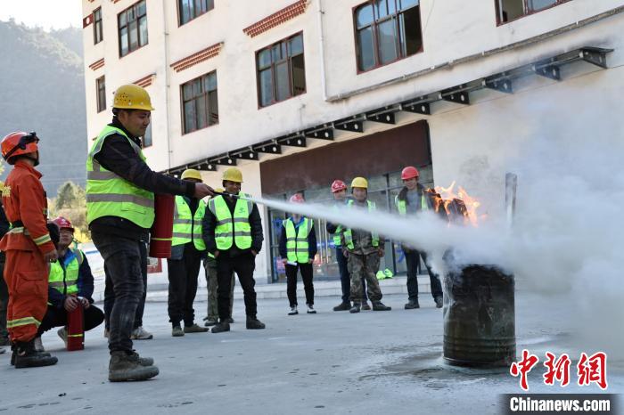 圖為項目部職工正在進(jìn)行滅火器操作。趙健宇 攝