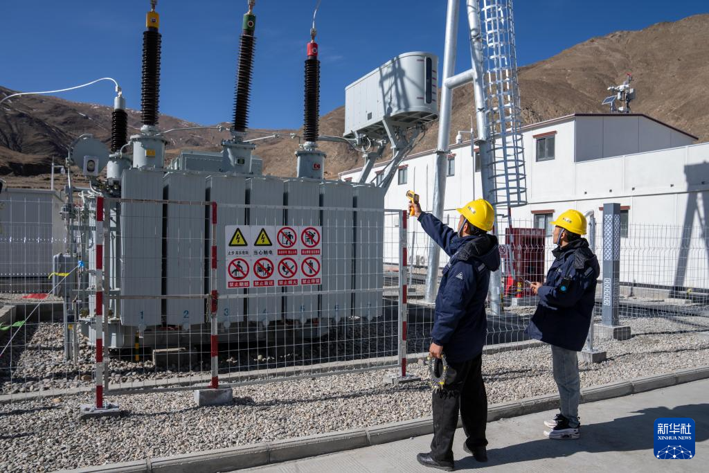 工作人員在給電站設(shè)備測溫(1月15日攝)。新華社記者 旦增尼瑪曲珠 攝