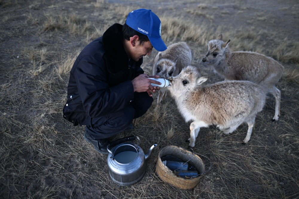 寒冬時(shí)節(jié),在青海省三江源國(guó)家公園管理局長(zhǎng)江源園區(qū)可可西里管理處索南達(dá)杰保護(hù)站,3只被救助的藏羚羊幼仔在巡山隊(duì)員的呵護(hù)下,目前健康狀況良好,不久將接受野化訓(xùn)練。