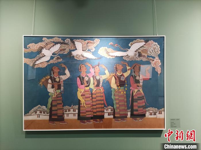 3月5日,“鏈接西藏——翟躍飛作品展”在北京西藏文化博物館開幕。圖為展出作品《美麗的家鄉(xiāng)·拉薩河》。中新網(wǎng)記者 林世雄 攝